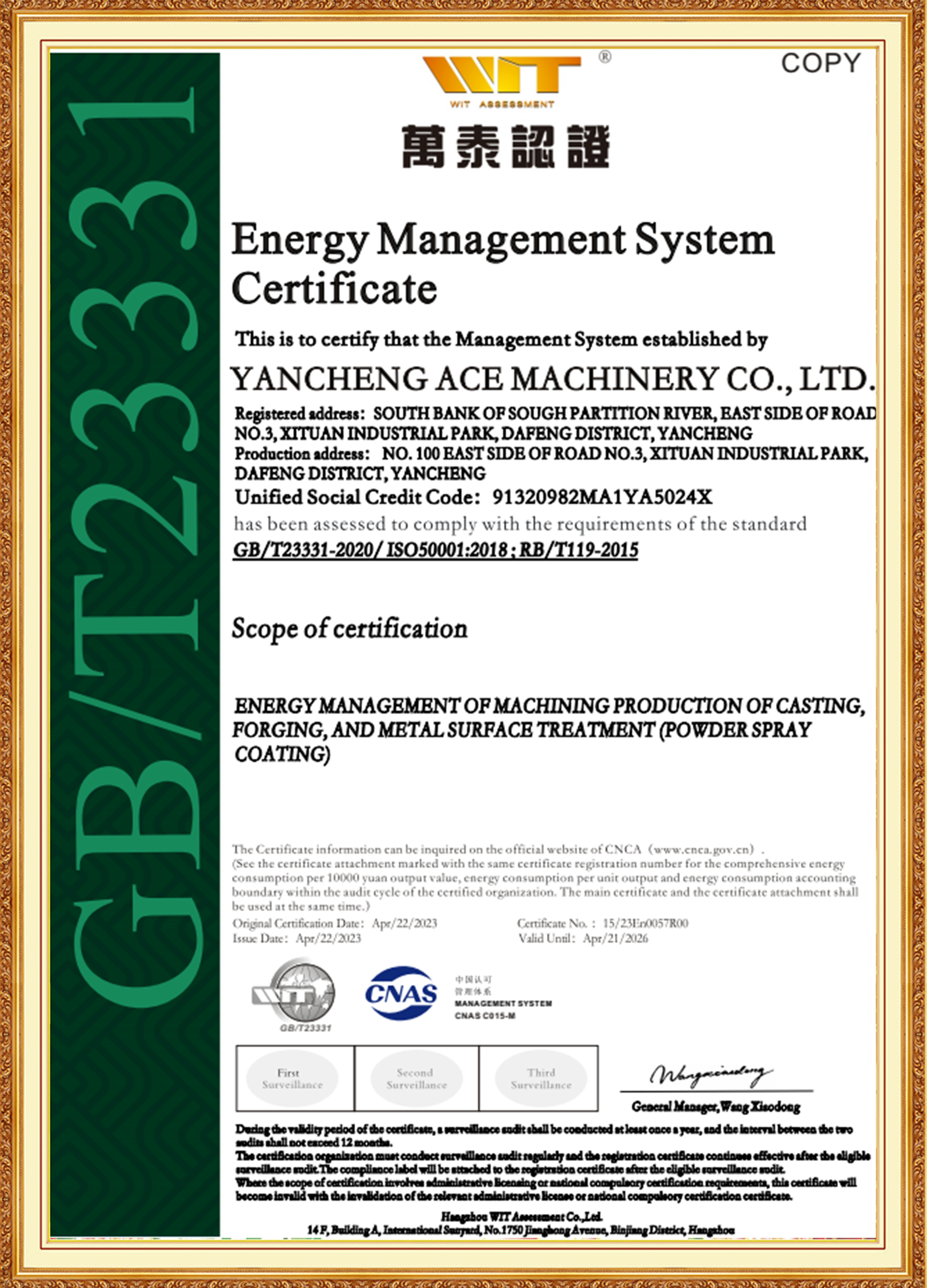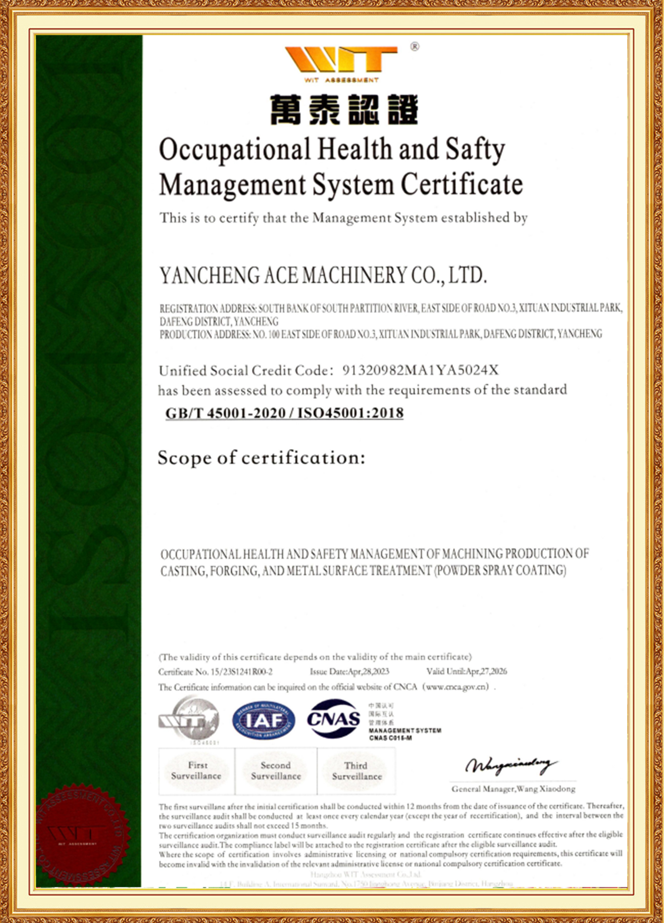 مجموعة آيس ويدعمها فريق إدارة من الأعضاء الرئيسيين الشباب الذين لديهم خبرة في صناعات المواد والمعالجة الحرارية والتصنيع ومعالجة الأسطح. إنهم على دراية جيدة بالمعايير الدولية والمحلية، ورائدون، وملتزمون بالابتكار. حصلت شركة ACE Machinery التابعة على شهادة نظام إدارة الجودة TÜV Rheinland ISO 9001، بالإضافة إلى شهادات النظام ISO 14001 و45001 و50001. وهي معترف بها كمؤسسة متخصصة ومكررة وفريدة من نوعها ومبتكرة، ومؤسسة وطنية للتكنولوجيا الفائقة، وحاصلة على تصنيف ائتماني مؤسسي على مستوى 3A.